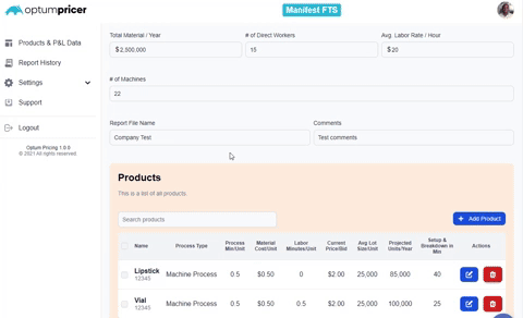 Knowing a product's Net profit at its current price, the user can determine if it needs improvement. OptumPricer allows the user to uniquely perform what-if scenarios to optimize the business’s profit by modifying its price, material cost, or labor time.